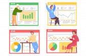 Ludzie siedzący i grający w grę. Facet jest szczęśliwy i podnosi ręce do góry. Statystyki badań
