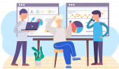 Zdjęcie "Ludzie siedzący i grający w grę. Facet jest szczęśliwy i podnosi ręce do góry. Statystyki badań" może być wykorzystywane do celów osobistych i komercyjnych zgodnie z warunkami zakupionej licencji Royalty-free. Obraz jest dostępny do pobrania w jakości wysokiej rozdzielczości do 5760x3840.