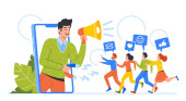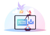 Randki w sieci, Pojęcie Kochających Stosunków Ludzkich. Spotkanie młodych ludzi w Internecie, Mężczyzna wysyła Sms do kobiety w ogromnym smartfonie