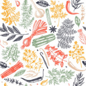 bezszwowe wektor wzór z ręcznie rysowane przyprawy i zioła