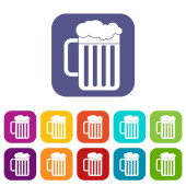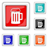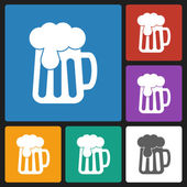 Biała drewniana ikona kufla na białym tle. Zestaw ikon w kolorach kwadratowych przycisków. Wektor.