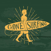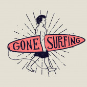 Zdjęcie "Vintage ręcznie rysowany letni T-Shirt. Poszedł surfować ze starym samochodem, vanem i znakiem shaka. Idealny do podkładki, kubka lub innych odcisków. Ilustracja wektora." może być wykorzystywane do celów osobistych i komercyjnych zgodnie z warunkami zakupionej licencji Royalty-free. Obraz jest dostępny do pobrania w jakości wysokiej rozdzielczości do 5760x3840.
