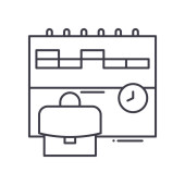 Ikona koncepcji harmonogramu, odizolowana ilustracja liniowa, wektor cienkiej linii, znak projektowy sieci web, symbol koncepcji zarysu z edytowalnym pociągnięciem na białym tle.
