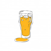 Tequila ze szkła winnego z lodem. Pij pierwiastek. Kolor obiektu. Retro szklane wino ręcznie rysować, projekt do dowolnych celów. Ilustracja restauracji. Prosty szkic. Izolacja na białym tle w stylu grawerowania