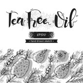 Koło wypełniłem gałąź liść i kwiat herbaciany drzewo. Szczegółowe ręcznie rysowane szkice, ilustracja wektorowa botaniczna.