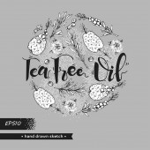 Zdjęcie "Koło wypełniłem gałąź liść i kwiat herbaciany drzewo. Szczegółowe ręcznie rysowane szkice, ilustracja wektorowa botaniczna. " może być wykorzystywane do celów osobistych i komercyjnych zgodnie z warunkami zakupionej licencji Royalty-free. Obraz jest dostępny do pobrania w jakości wysokiej rozdzielczości do 5760x3840.