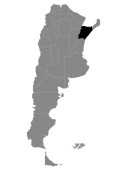 Czarna mapa lokalizacji argentyńskiej prowincji Misiones w obrębie szarej mapy Argentyny