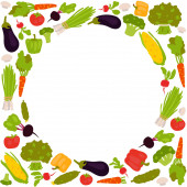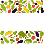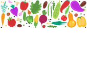 pozioma rama świeżych warzyw w stylu płaskiej konstrukcji izolowane na białym tle. Ilustracja wektora