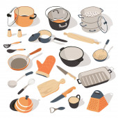 Wektor zestaw narzędzi kuchnia na białym tle na białym tle