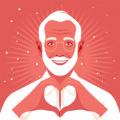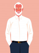 Starszy, pewny siebie mężczyzna stoi na pełnej wysokości. Dziadek krzyżuje ramiona i uśmiecha się. Szczęśliwego starości. Wektor płaska ilustracja
