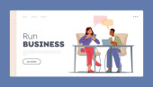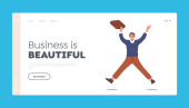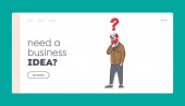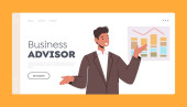 Business Man Planowanie, Prezentacja rozwiązań zadań Landing Page Template. Biznesmen Postać z ołówkiem na liście kontrolnej