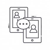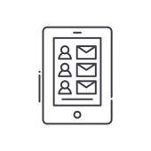 Mobilna ikona posłańca, odizolowana ilustracja liniowa, wektor cienkiej linii, znak projektowy sieci web, symbol koncepcyjny zarysu z edytowalnym pociągnięciem na białym tle.