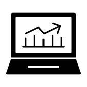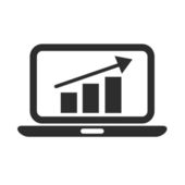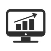 Oglądanie prezentacji statystyk biznesowych za pomocą wideokonferencji. Ikona nauczyciela. Wektor na białym tle. EPS 10.
