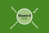 Witamina D wektor płaskie ilustracje. Żywność zawierająca witaminę D na stole. Źródło witaminy D: fasola, jaja, mleko, ryby, ser, pietruszka wyizolowana na białym tle