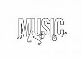 Słowo MUSIC pojęcie napisane w kolorowych kształtach retro i kolorów ilustracji.