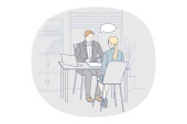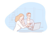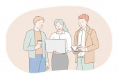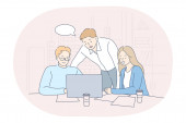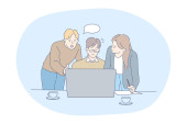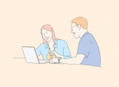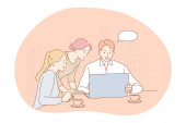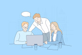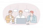 Praca zespołowa, burza mózgów, komunikacja biznesowa na temat koncepcji startupu