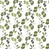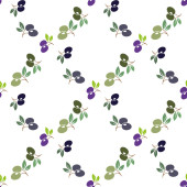 Płynny wzór wektora z ręcznie rysowanymi gałązkami drzewa oliwnego wyizolowanymi na białym. Vintage tle oliwek. eps 10