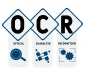 Szablon projektu strony wektorowej. OCR - optyczny akronim rozpoznawania znaków, koncepcja biznesowa. Ilustracja na stronie internetowej baner, materiały marketingowe, prezentacja biznesowa, reklama online.