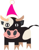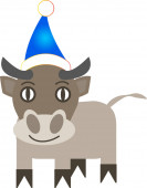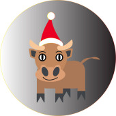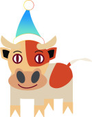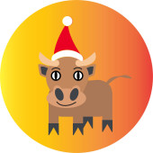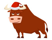 Symbolem roku 2021 jest byk. Wesoły cielak w kapeluszu Świętego Mikołaja. Treść sylwestrowa.