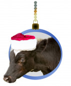 Symbolem roku 2021 jest byk. Wesoły cielak w kapeluszu Świętego Mikołaja. Treść sylwestrowa.
