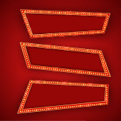 Retro żarówka lub lekki rocznik szyld na czerwonym tle. Ilustracja wektora