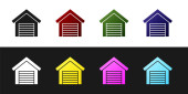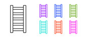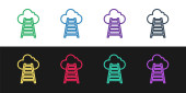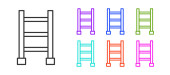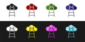 Zestaw Schody z wykończeniem flagi ikony izolowane na czarno-białym tle. Koncepcja rozwoju kariery. Koncepcja rozwoju biznesu. Wektor.