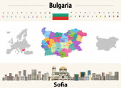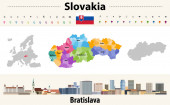 Mapa wektorowa gmin Bośni i Hercegowiny. Miejski krajobraz Sarajewa. Flaga Bośni i Hercegowiny
