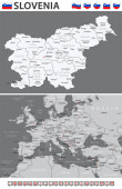 Mapa oddziałów administracyjnych Słowenii. Flaga Słowenii. Lublański pejzaż miasta. Ilustracja wektora