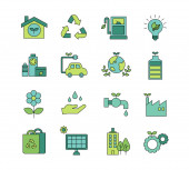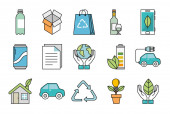 Biodegradowalne plastikowe ikony zestaw wektor płaski