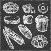 Szkic o produktach rzeźnickich. Realistyczny ręcznie rysowany stek mięsny. Narzędzia kuchenne dla gospodarstw domowych. Deska tnąca lub noże i szlifierka. Aromatyczne zioła i przyprawy. Ilustracja szczegółowa wektora ołówka