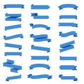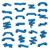 Niebieskie wstążki, wektor flagi. Prezentowane są kolorowe etykiety, tagi cenowe, banery do zakładek, wstążka vintage, pasek retro, opaska izolowany zestaw wektorów.