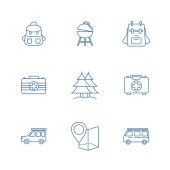 Zestaw szablonów wektorowych projektu logo Outdoor, koncepcja logo podróży, symbol ikony