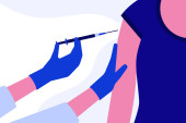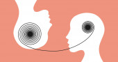 Przekłuta dziewczyna z nosem, przekłuwająca usta. Ilustracja stylu neo geo.