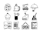 restauracja ciasto hamburgera soda piwo kolekcja ikon w stylu linii