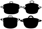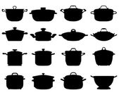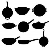 Patelnie i kotły na planie. Wizerunek wektora.