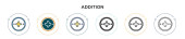 Zdjęcie "Ikona nawigacji w wypełnionym, cienkiej linii, zarys i styl skoku. Wektorowa ilustracja dwóch kolorowych i czarnych wektorowych projektów nawigacyjnych może być używana dla telefonów komórkowych, ui, web" może być wykorzystywane do celów osobistych i komercyjnych zgodnie z warunkami zakupionej licencji Royalty-free. Obraz jest dostępny do pobrania w jakości wysokiej rozdzielczości do 5760x3840.