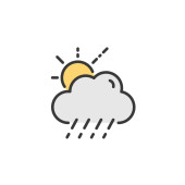 Deszcz, chmura i słońce. Wypełniona kolorowa ikona. Ilustracja wektora pogody