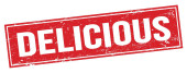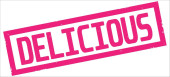 DELICIOUS tekst napisany na różowej bańce myślowej.