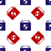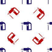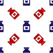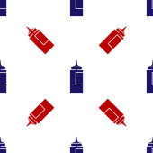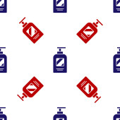 Niebieski i czerwony Szklana butelka z ikoną wódki odizolowany bezszwowy wzór na białym tle. Wektor.