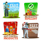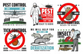 Służby zwalczania szkodników, ikony zagłady gryzoni i owadów. Deratyzacja, eksterminacja owadów i zwalczanie agrofagów za pomocą pyłu pestycydowego, kliniki weterynaryjnej i symbolu wektora zagrożenia kleszczowego