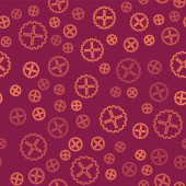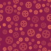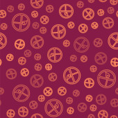 Brązowa linia Stara drewniana ikona koła odizolowana bezszwowy wzór na czerwonym tle. Wektor.