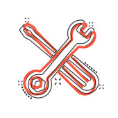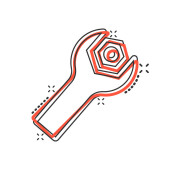 Zdjęcie "Ikona klucza w komicznym stylu. Klucz klawisz klawisz kreskówki ilustracja wektor na białym odizolowanym tle. Koncepcja biznesowa efektu rozprysku sprzętu naprawczego." może być wykorzystywane do celów osobistych i komercyjnych zgodnie z warunkami zakupionej licencji Royalty-free. Obraz jest dostępny do pobrania w jakości wysokiej rozdzielczości do 5760x3840.