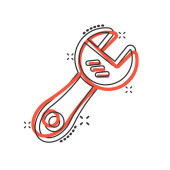 Ikona klucza w komicznym stylu. Klucz klawisz klawisz kreskówki ilustracja wektor na białym odizolowanym tle. Koncepcja biznesowa efektu rozprysku sprzętu naprawczego.