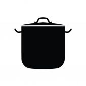 Ikona glifu sosnowego. Gotowanie puli lub znak patelni. Symbol graficzny do gotowania projektu strony internetowej, logo, aplikacji, interfejsu użytkownika