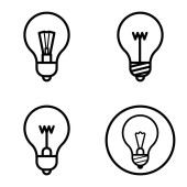 Ręcznie rysowane żarówki. Kolekcja lamp poddaszowych w stylu doodle. Przedmioty izolowane