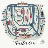 Kreskówkowa mapa Paryża z legendarnymi ikonami. Projekt druku