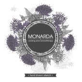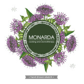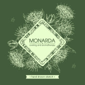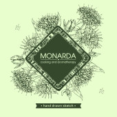 Wrobić Monardę albo Bergamota. Szczegółowe ręcznie rysowane szkice, wektorowa ilustracja botaniczna. Menu, etykieta, projekt opakowania.