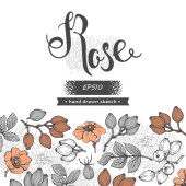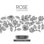 Koło wypełniło Rosę Canina i napisało Rose. Szczegółowe ręcznie rysowane szkice, ilustracja wektorowa botaniczna.