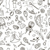 Kobiece rzeczy, kosmetyki i odzież bezproblemowy wzór w stylu doodle