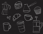 Szkic kredowy narzędzi do pieczenia. Wektorowe ilustracje naczyń kuchennych